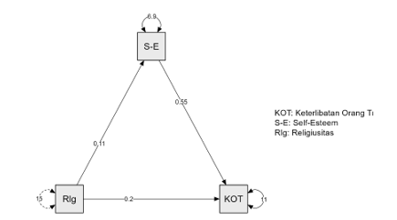 Orang tua dengan religiusitas memiliki peran penting bagi setiap individu yaitu sebagai pedoman hidup atau norma untuk menentukan batasan dalam berperilaku. Salah satu faktor yang dapat mempengaruhi religiusitas seseorang yaitu pengaruh pendidikan atau pengajaran yang orang tua ajarkan kepada anaknya [55] seperti contoh ketika orang tua memiliki nilai religiusitas yang rendah, seringkali menghadapi keraguan internal tentang kapasitas mereka sebagai orang tua, yang dapat menghalangi mereka untuk terlibat sepenuhnya dengan anak-anak mereka dan membuat mereka merasa tidak berharga atau tidak mampu memenuhi tanggung jawab yang diberikan kepada mereka sebagai orang tua [56]. Kurangnya self-esteem ini juga dapat mempengaruhi ketersediaan emosi mereka, sehingga lebih sulit bagi mereka untuk membentuk hubungan yang aman dan suportif dengan anak-anak mereka. Seiring waktu, rasa tidak aman ini dapat menyebabkan penarikan diri secara emosional atau keengganan untuk berpartisipasi dalam aktivitas sehari-hari anak mereka [57] hal ini sejalan dengan hasil analisis yang telah dilakukan bahwa variabel self-esteem dan keterlibatan orang tua memiliki hubungan yang positif dimana ketika tingkat self-esteem rendah maka keterlibatan orang tua juga akan rendah.